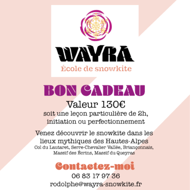 Que ce soit pour une initiation ou un perfectionnement, vous pouvez offrir (ou vous offrir !) une séance de snowkite de 2 heures.